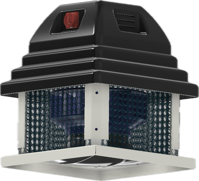 Radial fans suitable for roof ventilation processes, with the motor located outside the airflow.